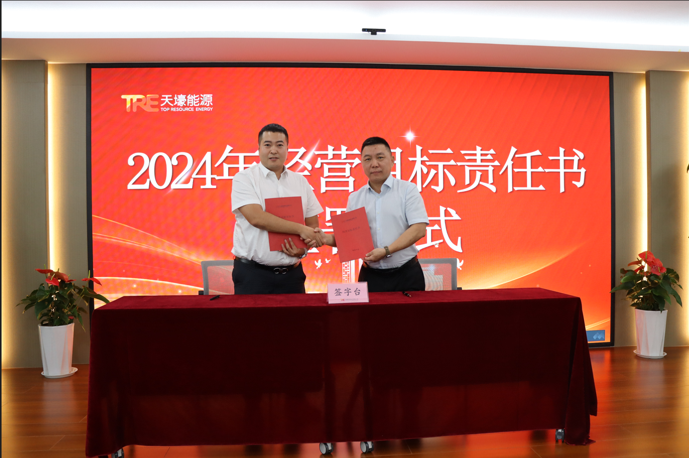 会议上董事长兼总经理陈作涛与九家分子公司负责人分别签订了《2024年度经营目标责任书》,正式立下“军令状”。